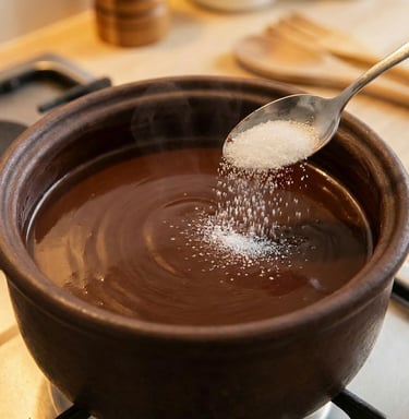 Una vez derretido, añade una mayor cantidad de agua y remueve con una cuchara. Dejando hervir 10 a 15 minutos.